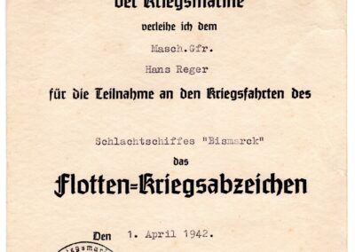 Schlachtschiff Bismarck – Sehr seltenes Originaldokumente eines Besatzungsmitglieds