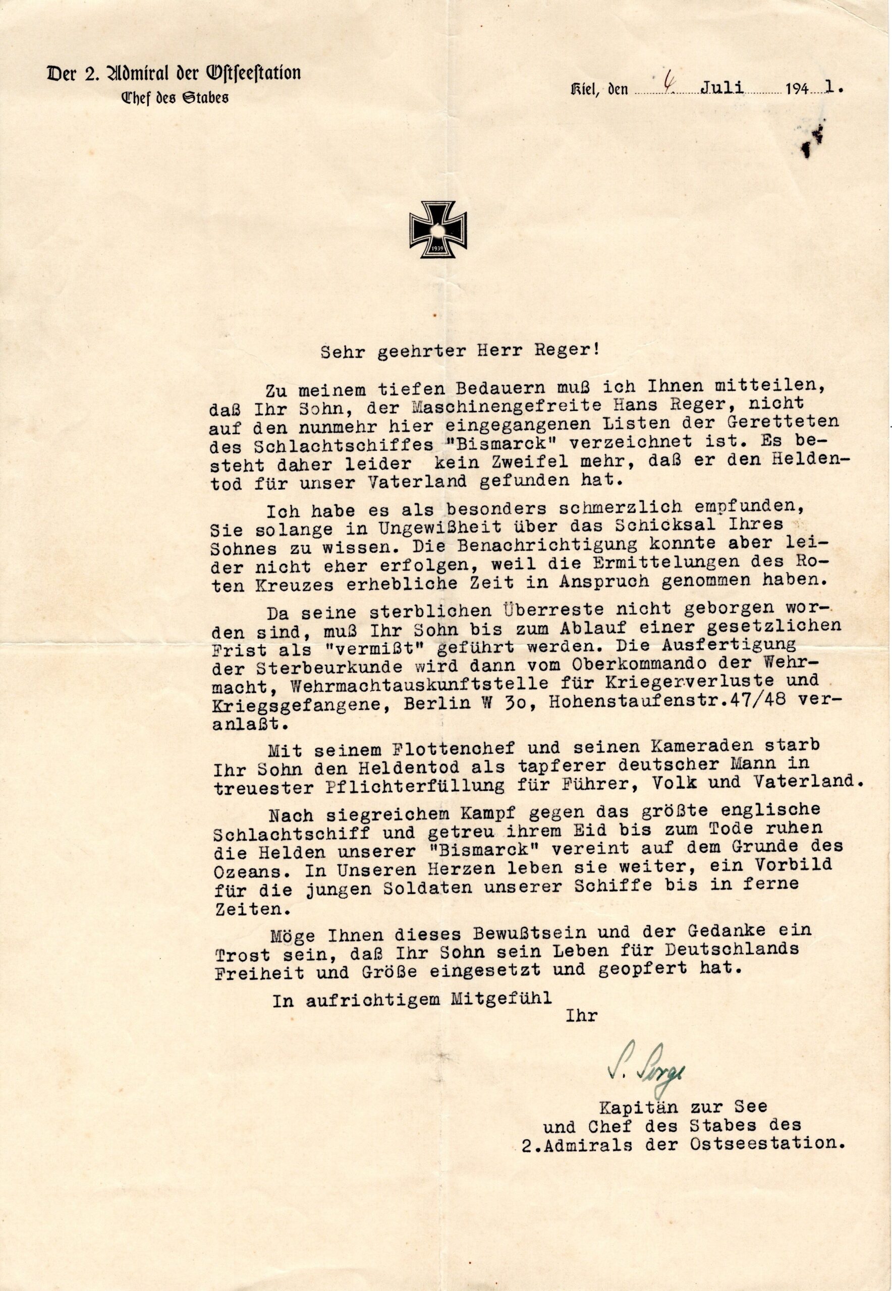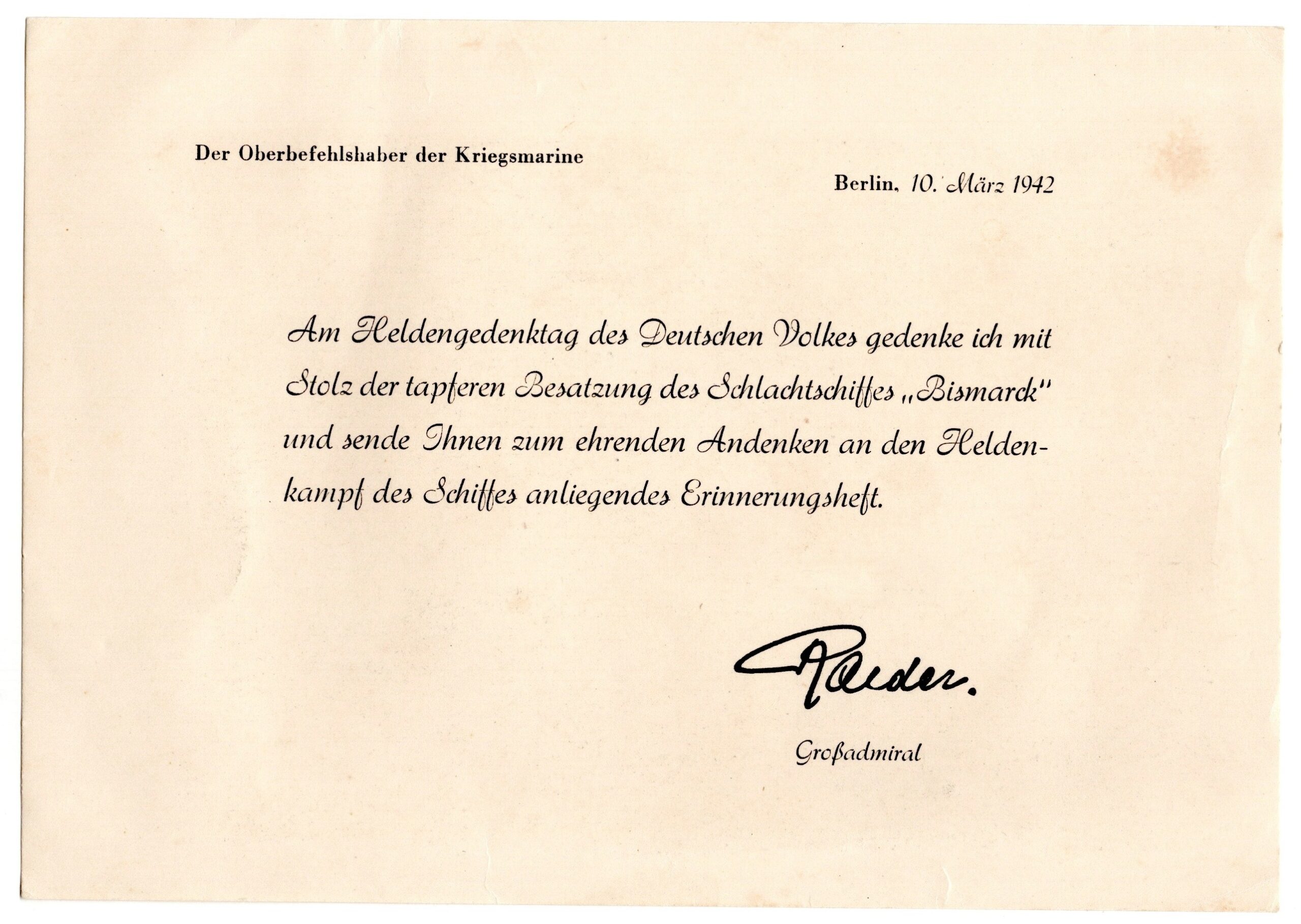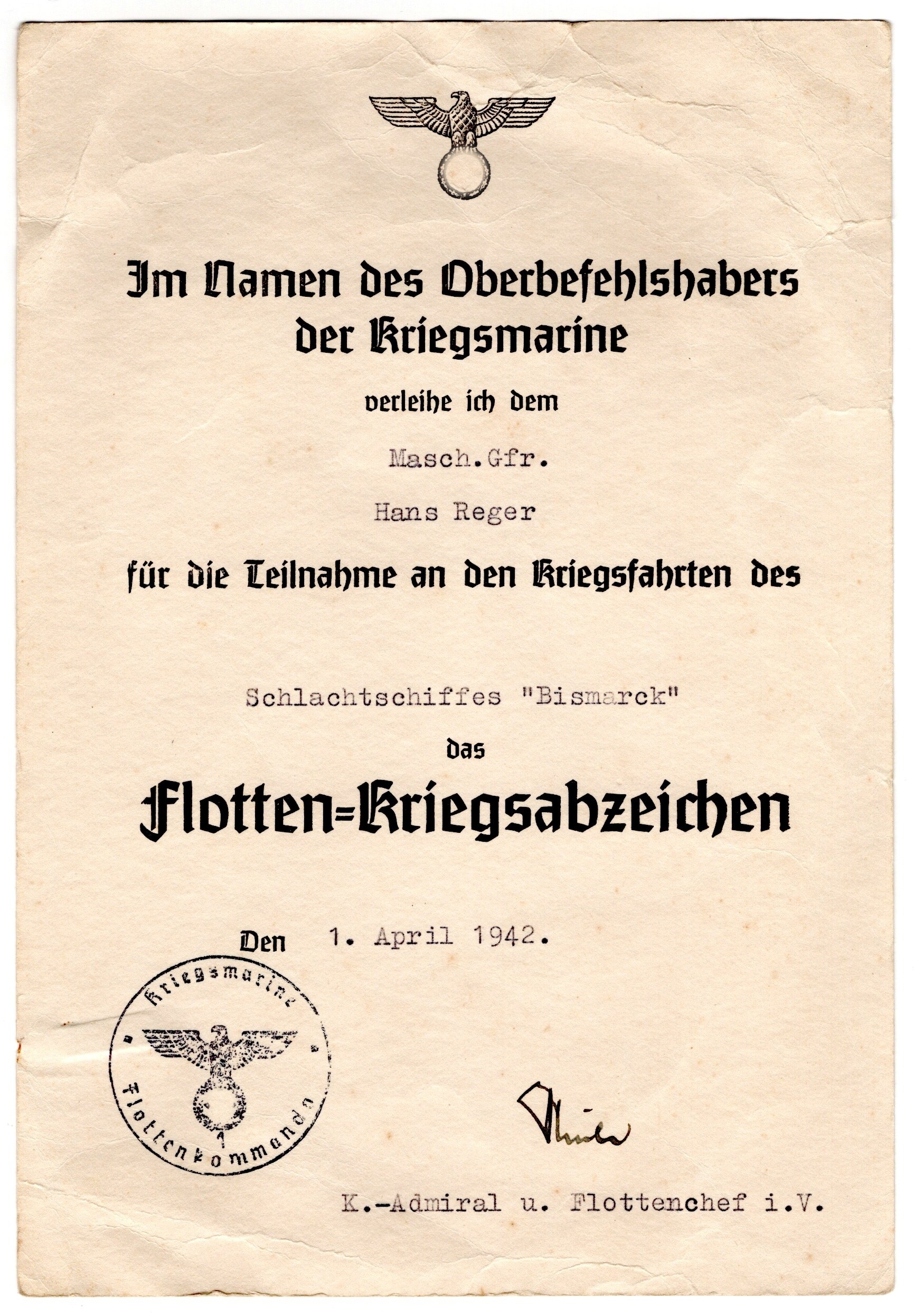 Schlachtschiff Bismarck – Sehr seltenes Originaldokumente eines Besatzungsmitglieds