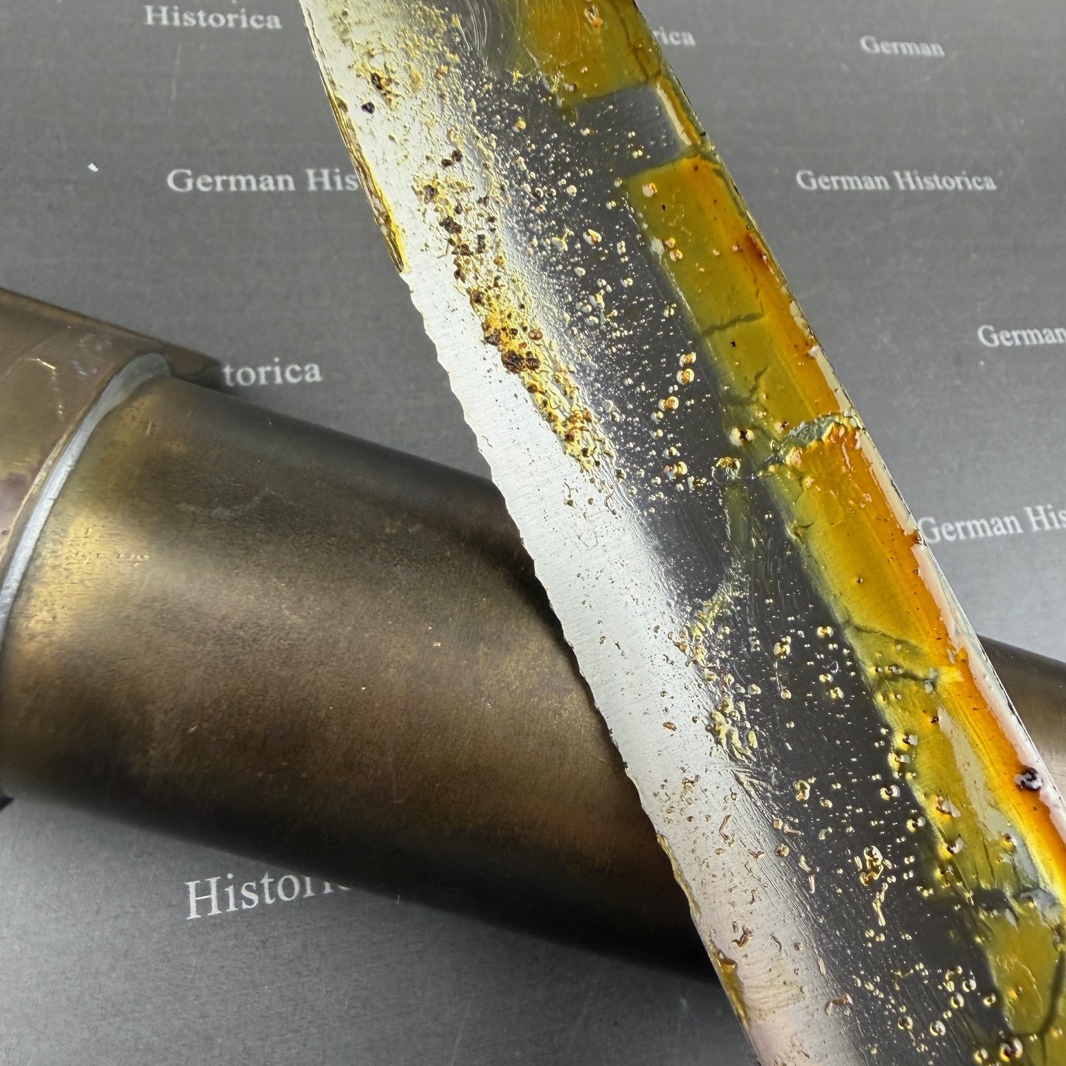 Das hier gezeigte Stück fällt in dieser Hinsicht deutlich auf. Der Erhaltungszustand ist ungewöhnlich gut. Die meisten erhaltenen Messer zeigen Altersspuren und oft spätere Veränderungen auf. Umso auffälliger sind Stücke, die weitgehend unberührt geblieben sind.