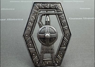 Der Entwurf stammte von Aksel Holmsen, einem bekannten norwegischen Silberschmied. Produziert wurde es zunächst von der Firma Webeto in Oslo. Das Motiv zeigt einen Wikingerkrieger mit Schwert und Schild, eingerahmt von der Runenaufschrift „FRONTKJEMPER“. So wurde bewusst ein Bezug zur Wikinger-Mythologie hergestellt, um eine vermeintliche nordische Kämpfertradition in den Dienst der NS-Propaganda zu stellen.
