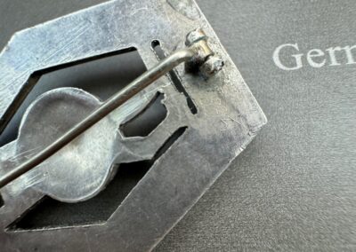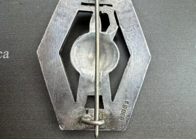 – Rückseite: dünne, gerade Nadel, zeittypisch sauber verlötet
