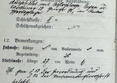 Handschriftliche Einträge in historischen Militärdokumenten sind nicht immer eindeutig zu lesen. Abkürzungen, zeittypische Schreibweisen, individuelle Handschriften und der Erhaltungszustand der Unterlagen können zu Lesefehlern oder abweichenden Interpretationen führen. Die hier vorgenommene Einordnung basiert auf dem bestmöglichen Abgleich der vorhandenen Dokumente und dem historischen Kontext.