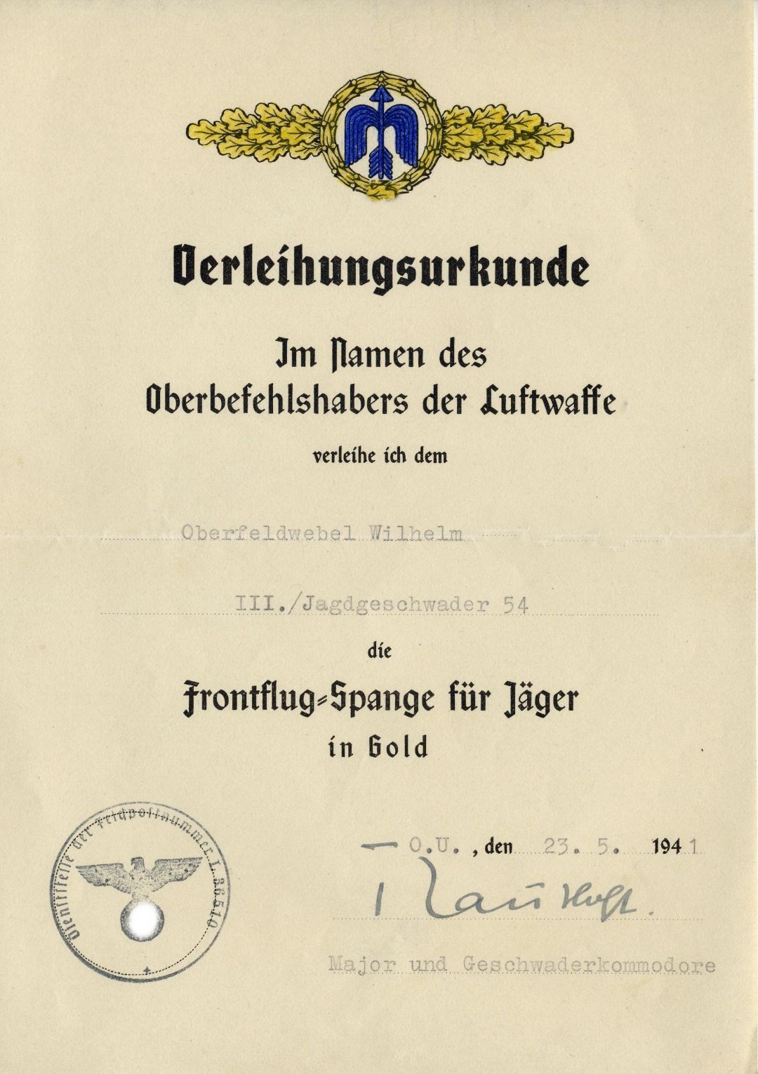 Nur die besten und erfahrensten Jagdflieger konnten diese Auszeichnung tatsächlich erreichen. Viele junge Piloten schafften es trotz Mut und Willen nicht, die notwendige Zahl an Frontflügen zu absolvieren. Sie fielen oft schon in den ersten Einsätzen den zahlenmäßig überlegenen Gegnern zum Opfer, die über größere Erfahrung und besser ausgerüstete Flugzeuge verfügten. Im Laufe des Krieges verschärfte sich die Lage zusätzlich: Es fehlte an Flugbenzin, an Zeit für eine gründliche Ausbildung und an Ersatz für die hohen Verluste. Dadurch wurden die Reihen der erfahrenen Piloten immer dünner, während die Belastung der verbliebenen Jagdflieger stetig zunahm.Die Frontflugspange für Jagdflieger wurde am 30. Januar 1941 gestiftet. Sie war als Anerkennung für die Teilnahme an einer bestimmten Zahl von Fronteinsätzen gedacht und machte Einsatzbereitschaft und Erfahrung sichtbar.