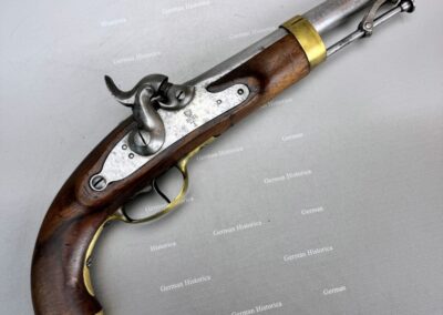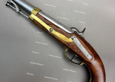 Die frühe Ausführung mit Gürtelhaken ist heute deutlich seltener, da die meisten Pistolen in Mainz umgerüstet wurden. Exemplare mit Haken und späten preußischen Stempeln stammen fast immer aus dem Bestand der Schiffe Eckernförde und Barbarossa.