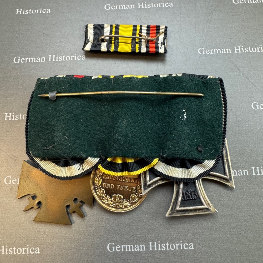 Im Rahmen einer Haushaltsauflösung wurde eine Spange entdeckt, die bislang nicht in Sammlerhand war. Darauf befindet sich die Württembergische Militärverdienstmedaille in Gold. Auch wenn an dem Stück keine Feingehaltsstempel erkennbar sind, lässt es sich eindeutig als die goldene Ausführung identifizieren.