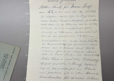 Der Absender schildert nüchtern seinen Dienst als Offizier mit „drei Sternen“. Er berichtet von einer Einheit mit 26 Mann, von Unterkunft, Verpflegung und den täglichen Aufgaben. Er erwähnt auch die laute, belastende Umgebung – den „verdammten Lärm ringsum“. Besonders eindringlich ist der Schluss: Er wünscht seinem Freund, er möge „aus dem Hexenkessel Berlin“ heil herauskommen.