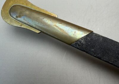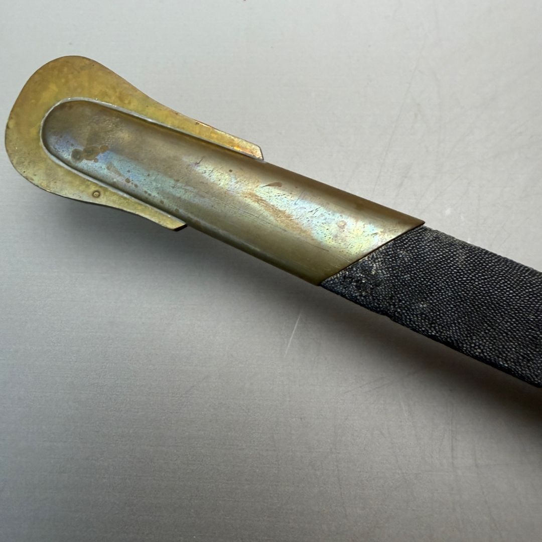 Messingbeschläge an einem Scheidenkörper, der vollständig mit fäulnisresistenter Rochenhaut überzogen ist.