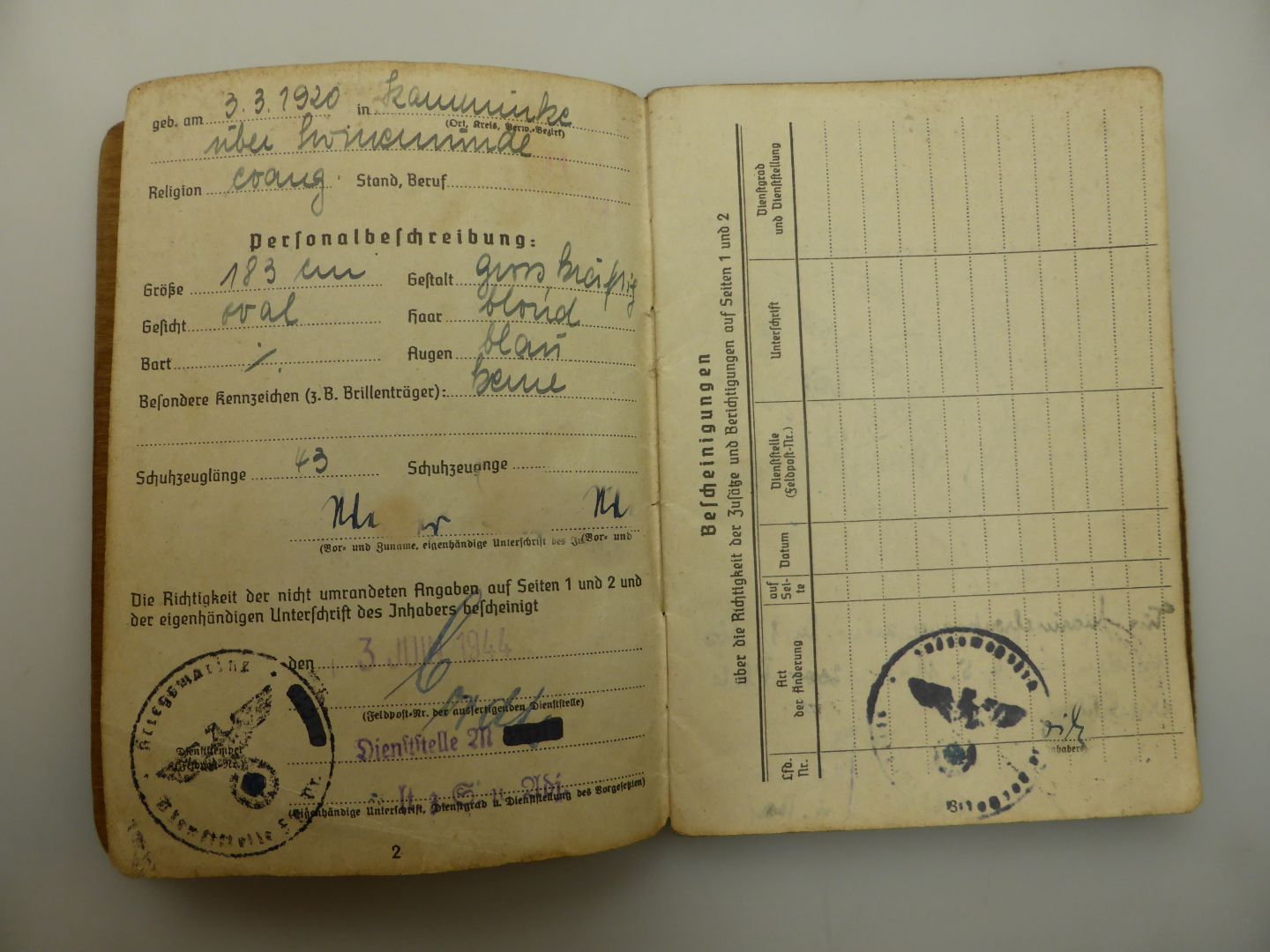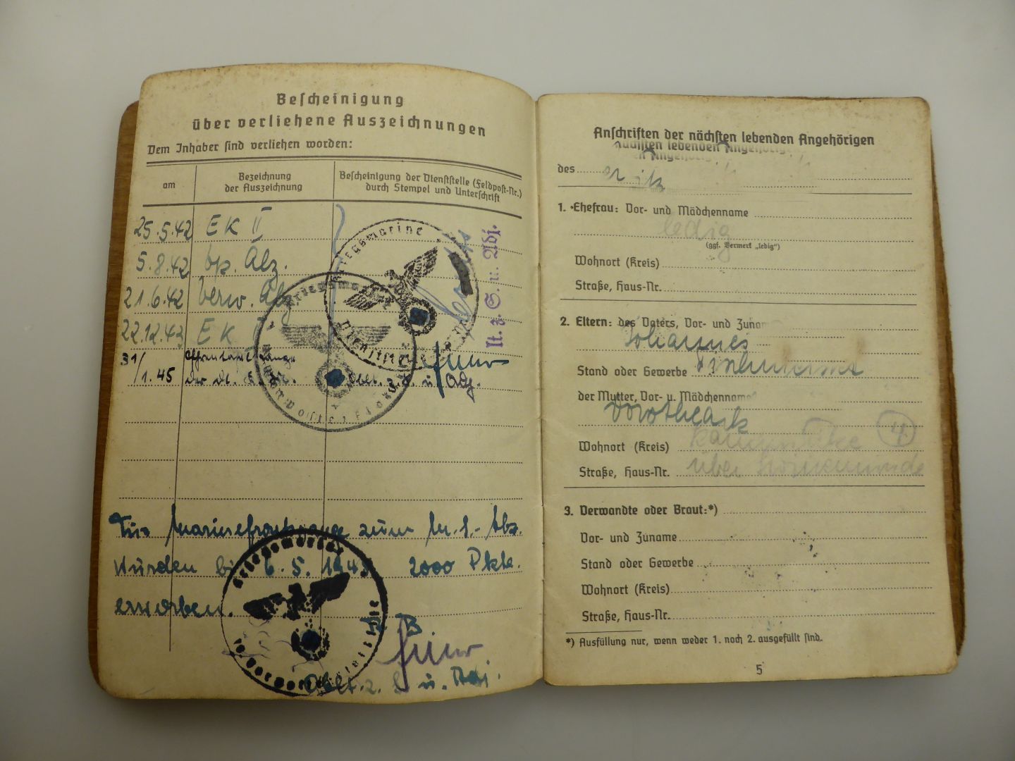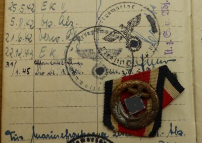 Sein Soldbuch vermerkt zudem Dienstzeiten bis Ende 1946 – typisch für Marineangehörige, die nach Kriegsende in der Minenräum- und Sicherungstätigkeit weiter eingesetzt wurden.