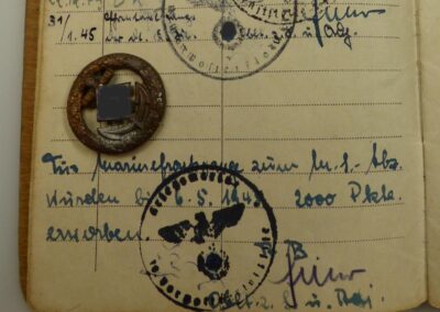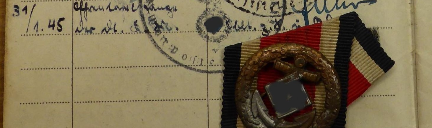 Ein besonders interessanter Punkt ist die Verleihung der Ehrentafelspange der Kriegsmarine am 31. Januar 1945, wie im Nachlass vermerkt. Die Ehrentafelspange wurde offiziell erst 1944 gestiftet – und laut Literatur sind nur etwa 29 Verleihungen bekannt.