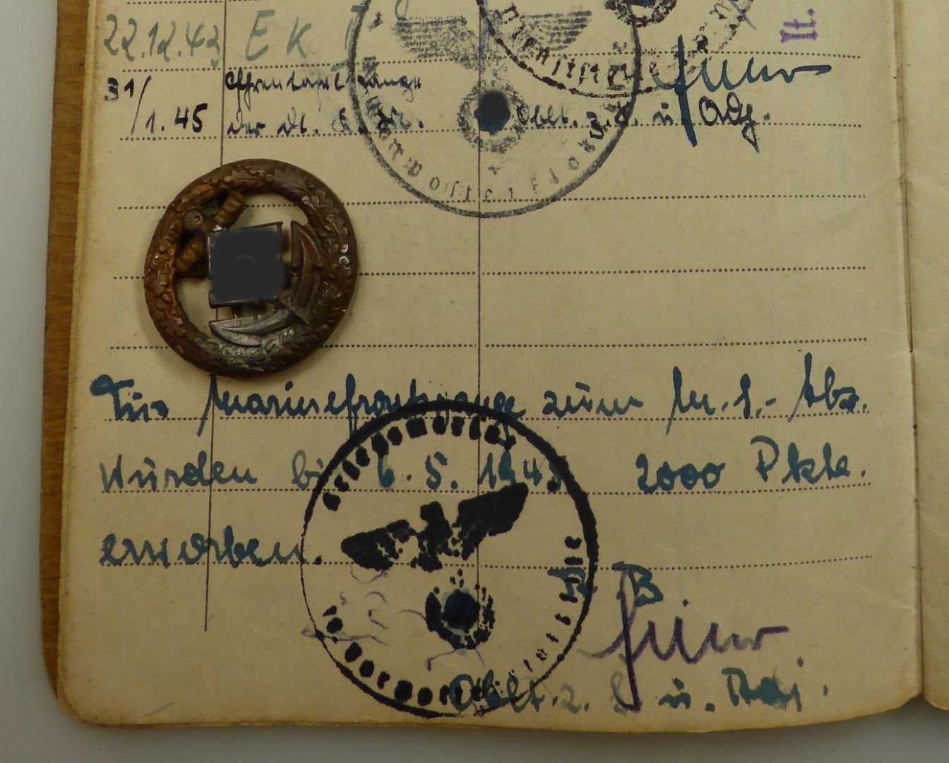Im Nachlass von Oberleutnant zur See Werner P. befand sich sein Kriegsmarine-Soldbuch mit allen relevanten Einträgen. Diese dokumentieren seinen Dienst bei der 18. Vorpostenflottille sowie an Bord des Sicherungs- und Minensuchfahrzeugs M 364 (GSMA). Nach dem Krieg war dieses Schiff u. a. im Auftrag der Briten mit Munitionsräumung beschäftigt. In seinem Soldbuch sind diese Auszeichnungen ordnungsgemäß eingetragen: