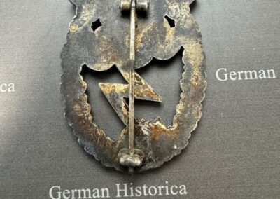 Das hier vorgestellte Erdkampfabzeichen der Luftwaffe ist ein interessantes Abzeichen aus den letzten Jahren des Zweiten Weltkriegs. Es wurde an Soldaten der Flak-Einheiten sowie an Fallschirmjäger verliehen, die im Fronteinsatz bzw. im Erdkampf standen. Gefertigt wurde dieses Exemplar vom Hersteller Arno v. Wallpach.