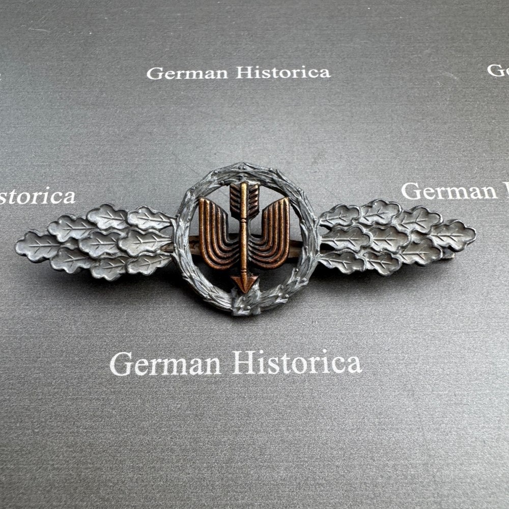 Die vorliegende Spange stellt kein reguläres Serienprodukt dar, sondern eine zeitgenössische Sonderform innerhalb der späten Fertigung. Aus einer vorhandenen Jägerspange entstand durch gezielten Umbau eine Frontflugspange für Zerstörer.
