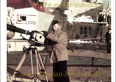 Das Farbfoto dokumentiert nicht nur die Anwesenheit von Gerhard Garms als PK-Bildberichterstatter, sondern liefert auch einen seltenen Einblick in die Farbgestaltung und Tarnstrategien der Kriegsmarine im Jahr 1942. Es unterstreicht die besondere Stellung des Garms-Nachlasses, in dem sich Bildmaterial findet, das in dieser Form nur äußerst selten überliefert ist.