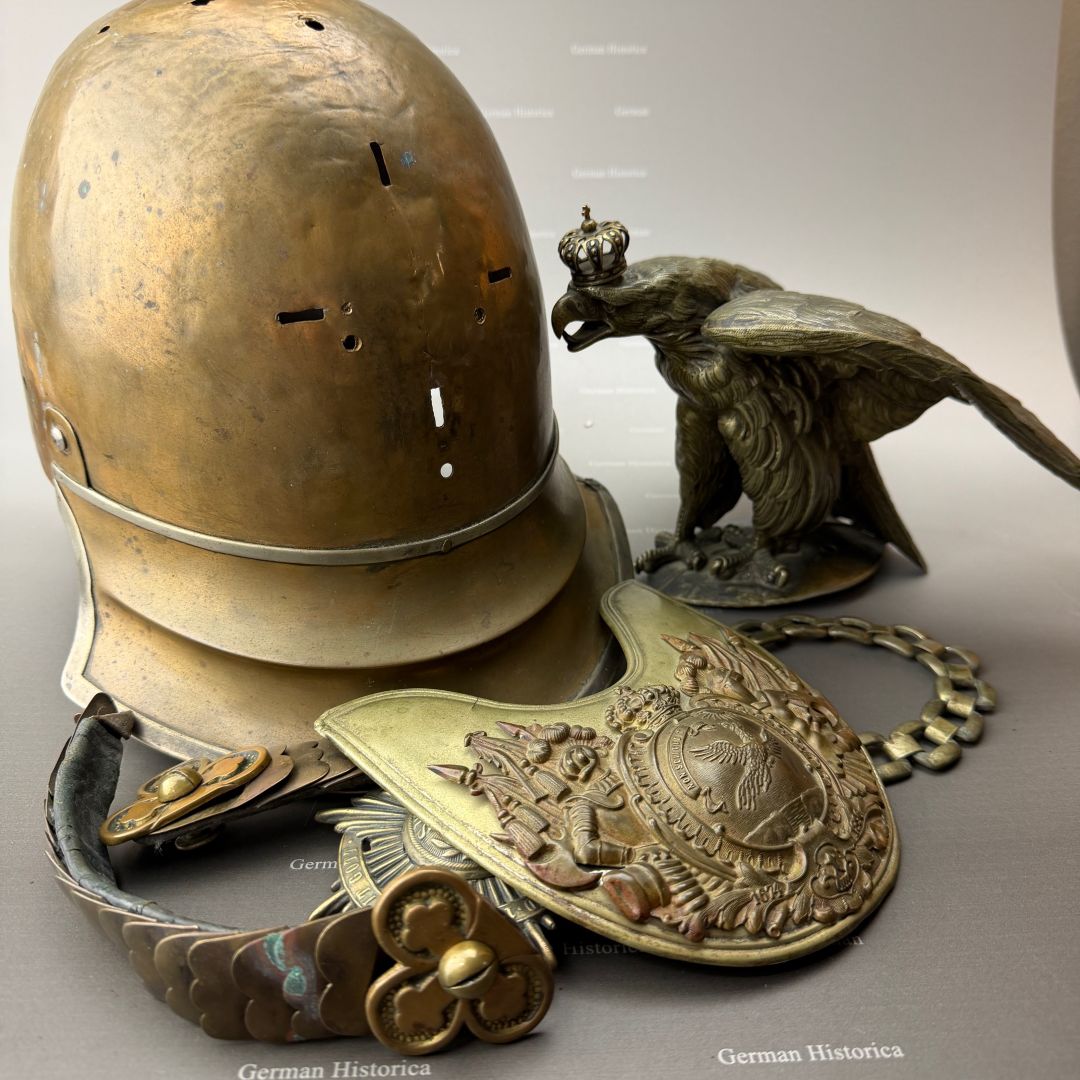 Preußischer Kürassierhelm (Garde du Corps / Garde-Kürassiere) mit Paradeadler und Ringkragen – Fund aus Theaterfundus