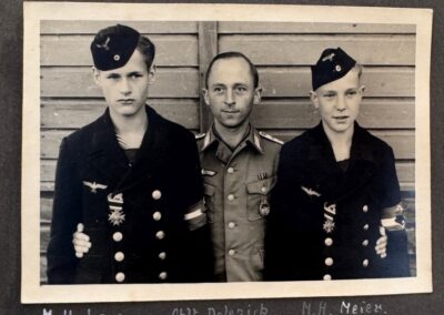 Für ihre Beteiligung am Abschuss der „Coffey’s Pot“ erhielten beide das Kriegsverdienstkreuz 2. Klasse mit Schwertern, was für Flakhelfer dieses Alters bereits außergewöhnlich war. Auf dem Foto ist die Auszeichnung gut sichtbar an den dunklen Marine-Überziehern befestigt – ein seltener und zugleich verstörender Beleg dafür, wie gezielt die Aussicht auf Auszeichnungen und Orden selbst minderjährige Marine-Helfer zu solch gefährlichen Einsätzen verführte
