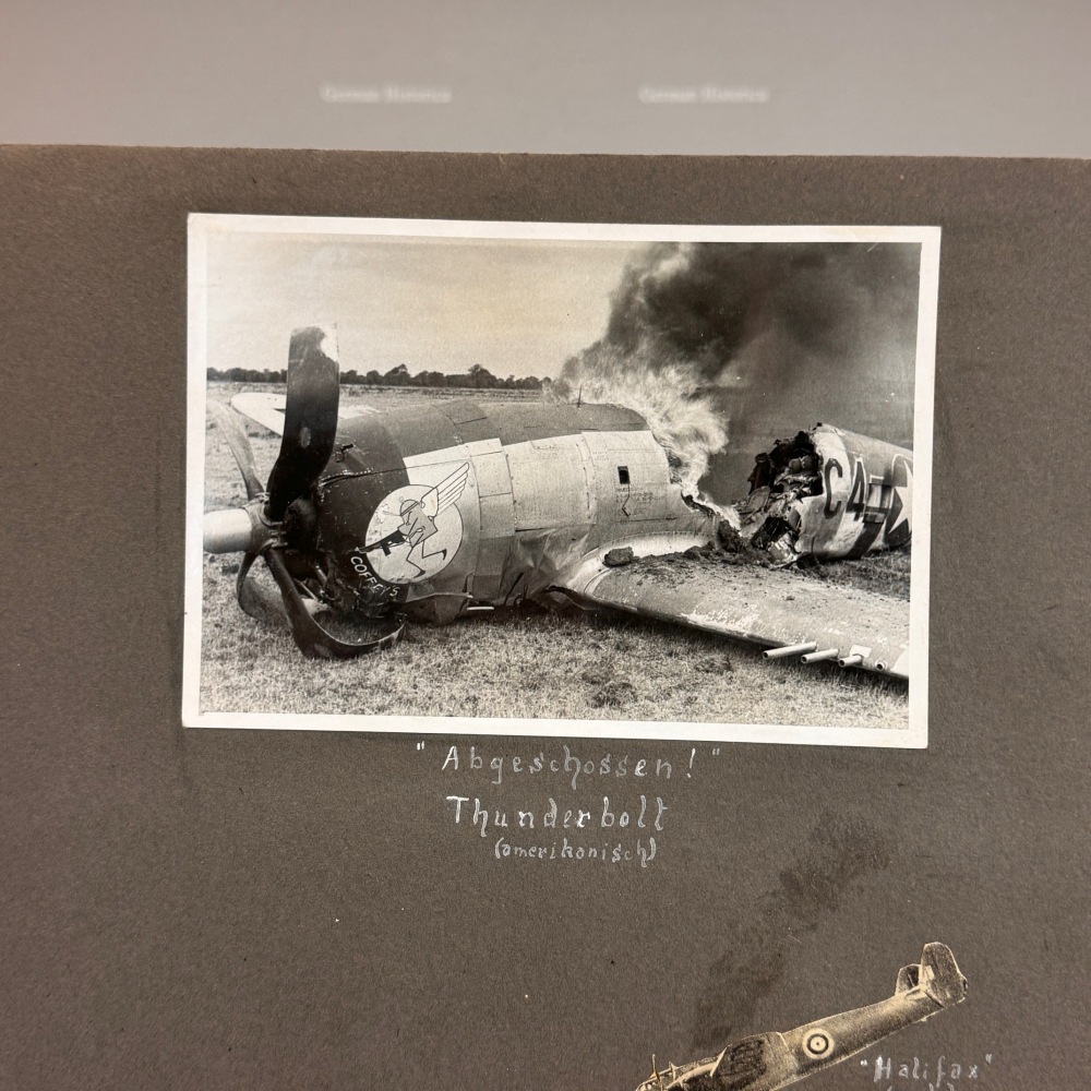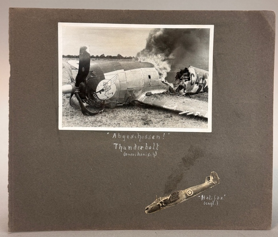 Dieses Fotoalbum der Marine-Flakabteilung 251 dokumentiert ein konkretes Ereignis des Luftkriegs über Kiel. Am 6. Juni 1944, während sich der militärische Fokus weltweit auf die alliierte Landung in der Normandie richtete, kam es im Bereich der Batterie Ottendorf zu einem Abschuss, bei dem sich die Lebenswege eines amerikanischen Piloten und zweier deutscher Marinehelfer kreuzten.