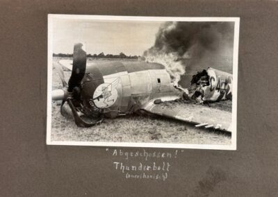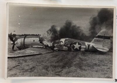Die auf den Aufnahmen gezeigte brennende P-47D Thunderbolt konnte eindeutig als „Coffey’s Pot“ (Seriennummer 42-26407) identifiziert werden.