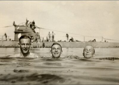 Ein seltener Moment der Unbeschwertheit: Die jungen Männer genießen ein Bad, während im Hintergrund ein U-Boot vom Typ II – ein Ausbildungsboot – an der Oberfläche liegt. Nur wenige Wochen später am 1. September, sollte der 2. Weltkrieg beginnen.Sechs Jahre danach 1945, lagen unzählige Feindfahrten auf fast allen Weltmeeren und verlustreiche Gefechte im Atlantik hinter ihnen. Rund 35.000 U-Bootmänner hatten ihr Leben verloren – der Preis für einen der härtesten und opferreichsten Einsatzbereiche des Zweiten Weltkriegs. https://german-historica.de/u-boot-abzeichen-fotos-dokumente/