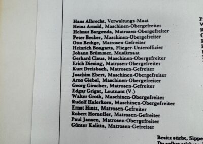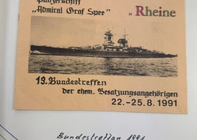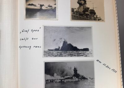 Ein weiterer Schwerpunkt liegt auf den Nachkriegstreffen ehemaliger Besatzungsangehöriger der Admiral Graf Spee. Die Fotografien zeigen Wiedersehen, Gespräche und gemeinsames Erinnern. Sie machen deutlich, wie stark die Männer durch ihre gemeinsamen Erlebnisse verbunden blieben und wie diese Erfahrungen über Jahre hinweg im Kreis der ehemaligen Kameraden verarbeitet wurden.